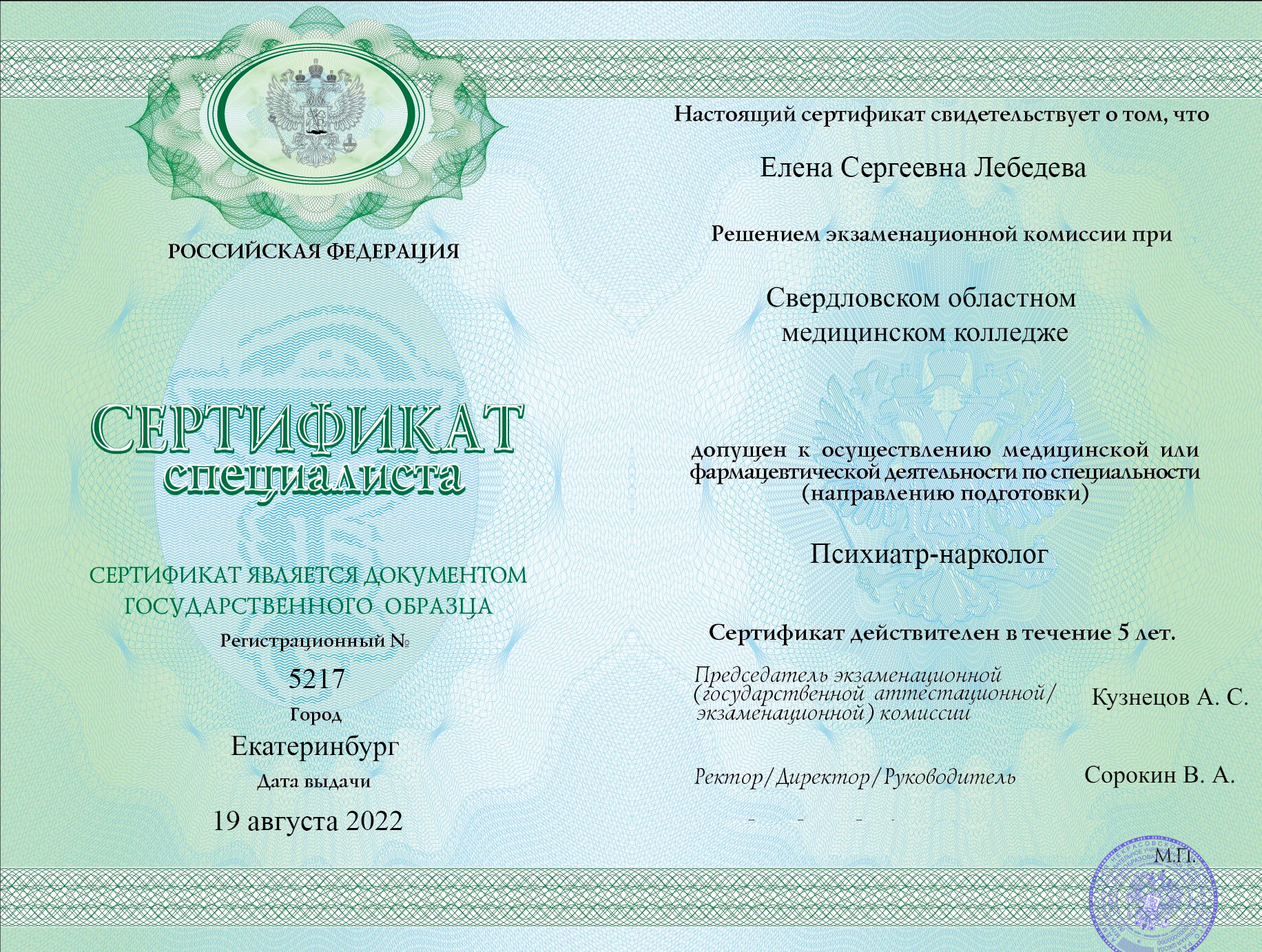 Елена Сергеевна Лебедева врач нарколог клиники доктора Стукаловой в Коноше